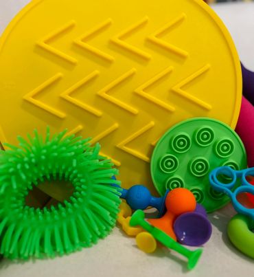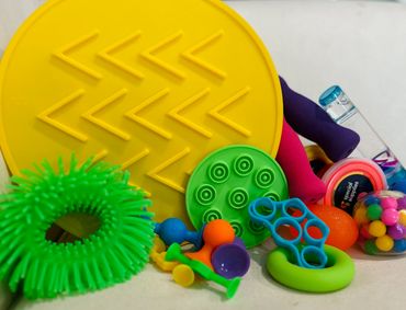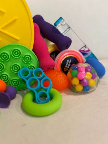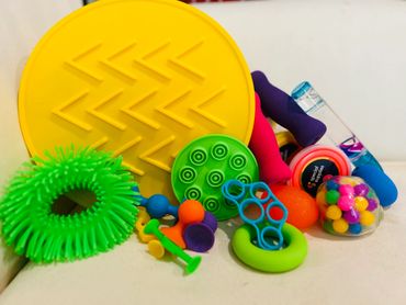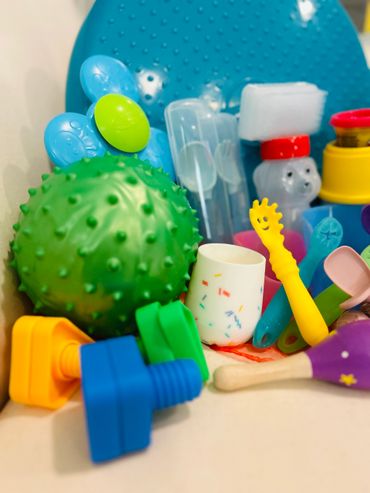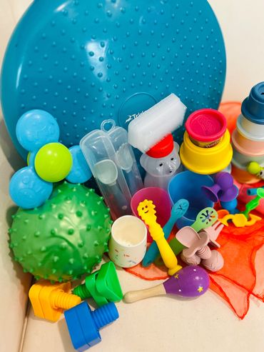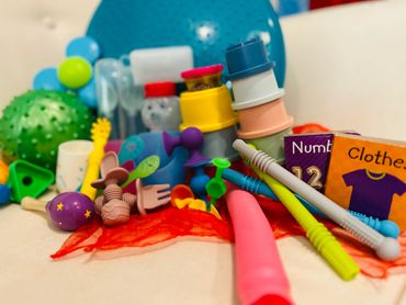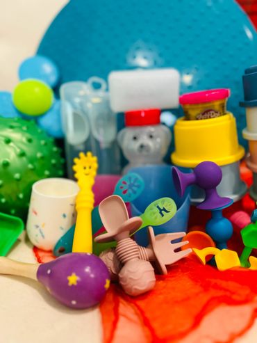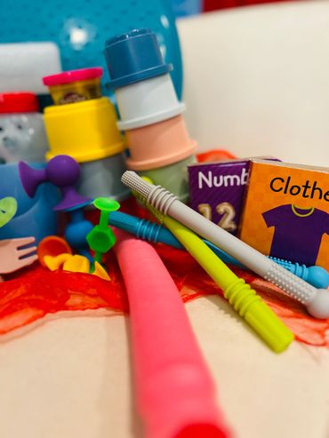 Photos below are examples of "Magic Toolbox" content. Content varies depending on your child's age, and color and patterns may vary on specific items. Our toolboxes come in 0-4 years old and 5+ years old. Not all contents pictured below are in a single box. Your magic toolbox will be a handful of items specific to your child's needs and age. Please fill in the form below to get on our waiting list for your child's "Magic Toolbox"!